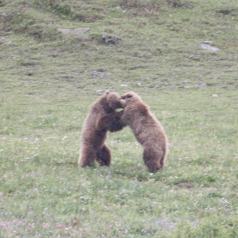 Off in the distance a Momma Grizzly and one of her cubs.