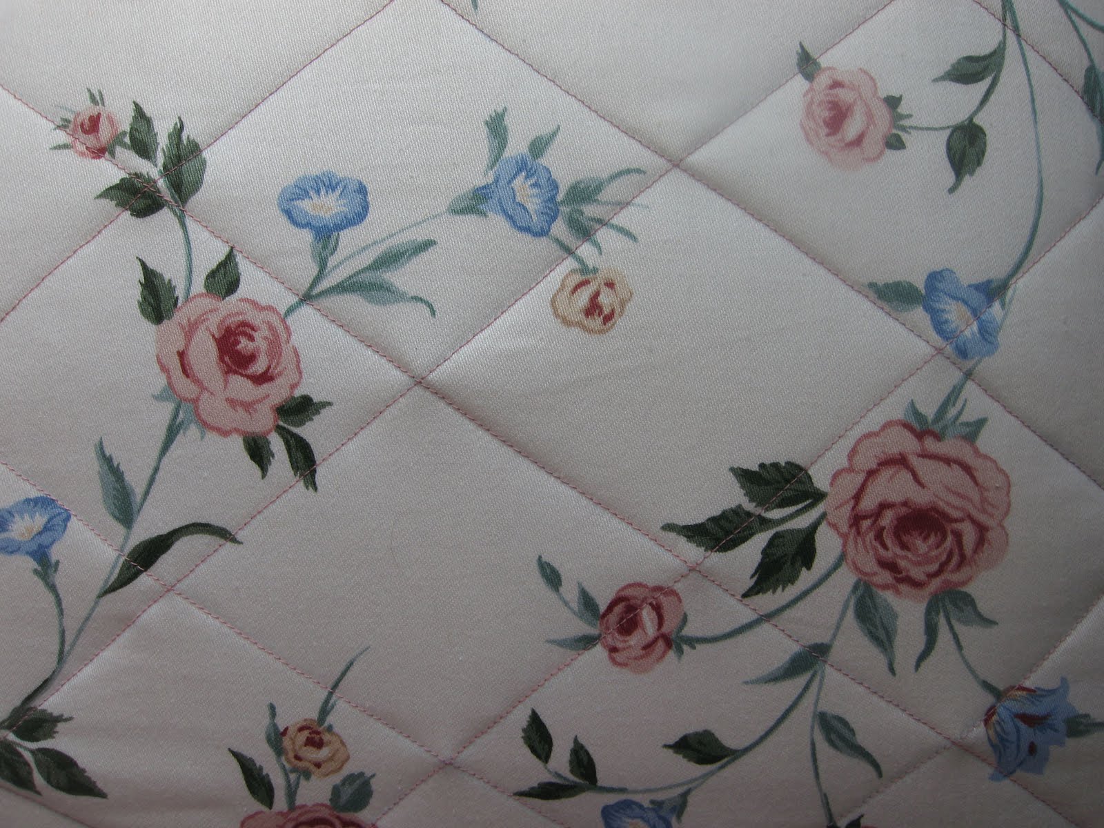 Love that mauve colored piping that you did on the edges. How pretty that is. Those blue flowers look like beautiful morning glories. Love it.